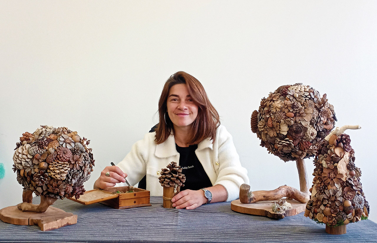 Adeline Berthet transforme les éléments de la nature en créations uniques et poétiques. De ses mains naissent des arbres miniatures, des animaux et autres objets artisanaux, réalisés à partir de bois, pommes de pin, glands ou écorces. Chaque œuvre, entièrement faite main, apporte une touche de nature et de sérénité à votre intérieur.